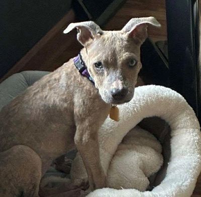Meet Sharon a beautiful and intelligent female German Shepherd mix. She is six months old. She's a loyal companion, always eager to please and quick to learn. Sharon thrives on mental and physical stimulation, making her a great partner for walks, hikes, or even agility training. She's looking for a loving companion who can provide consistent training and a secure, loving home. Sharon can also couch potato like no other! She will curl up into a ball on your lap and binge watch a good series. Sharon would be happiest in a household with a family that can appreciate her protective nature and playful spirit. She's a truly special pup!