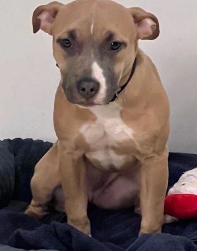 Simone is a 9 month old pit puppy. She is very sweet and cuddly. She is not particularly high energy but has bursts of energy playing with dogs and toys. She has slight resource guarding issues and would do well with larger dogs or by herself. She is short and stocky in stature and will happily sit in a lap, snoring, for hours. She is crate trained and working on potty training.